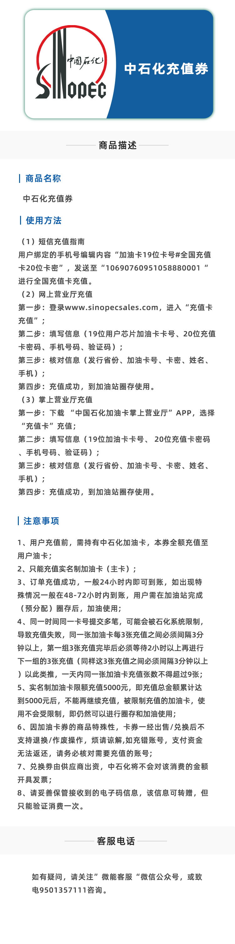 本商品需要有芯片加油卡/IC卡(实体卡)方可进行加油消费,请确认后再下单。本商品属于虚拟商品,一旦兑换,不退不换。请填写正确的手机号,填写错误无法退改。